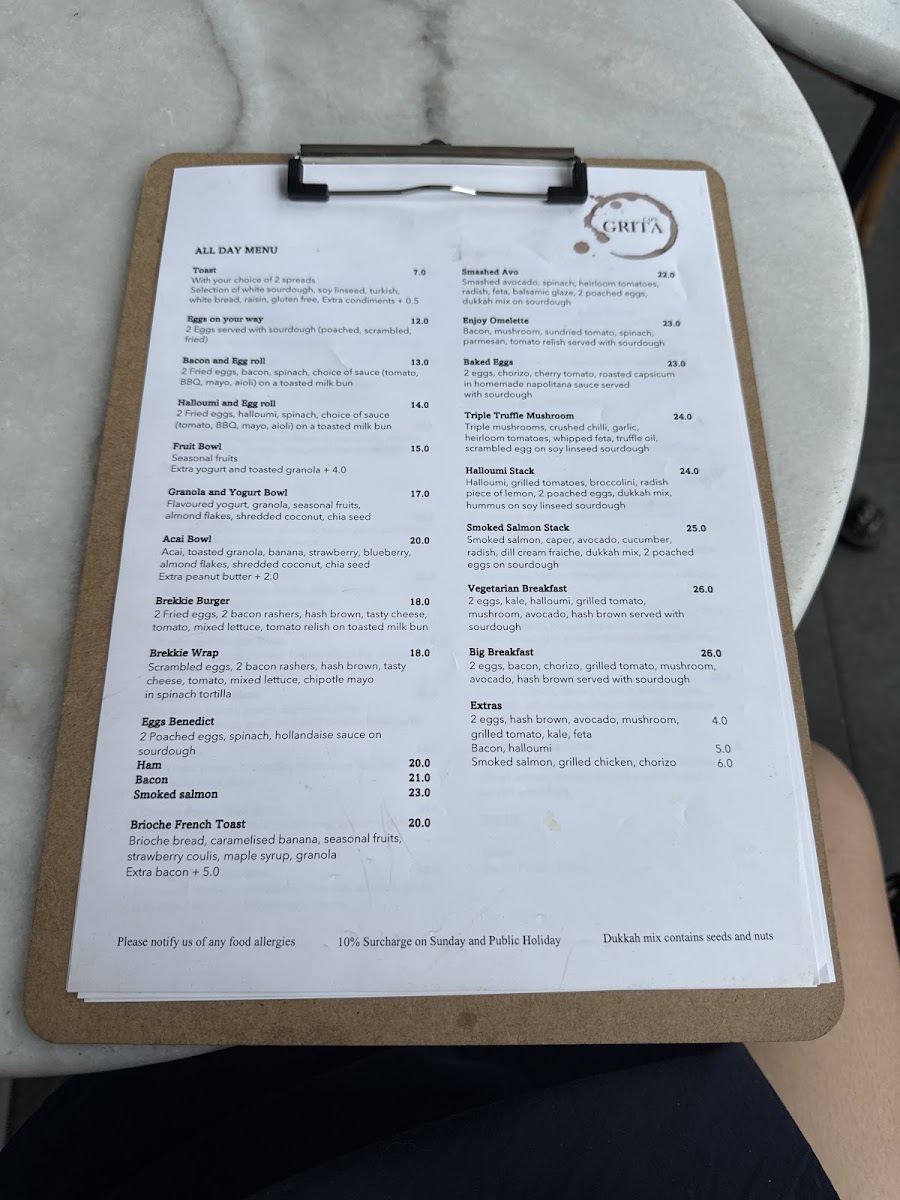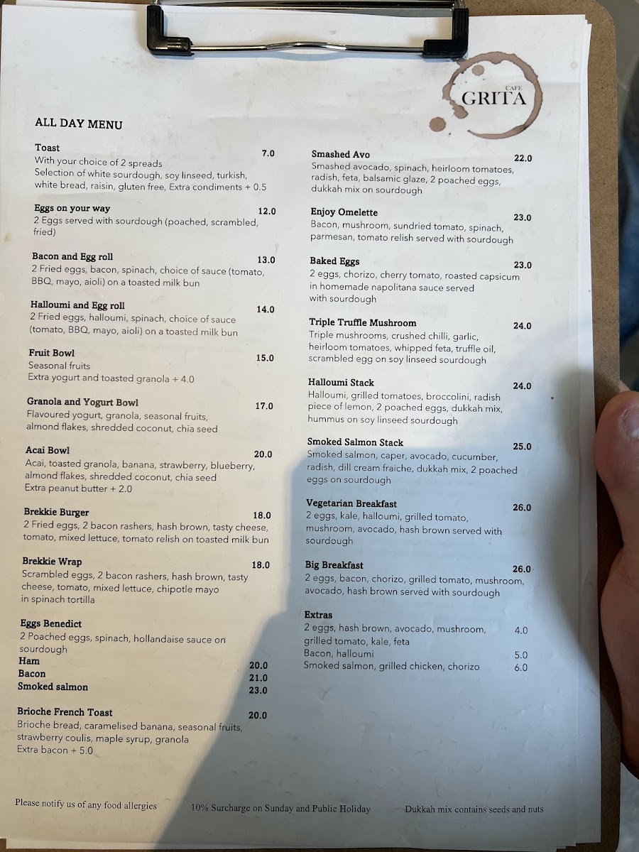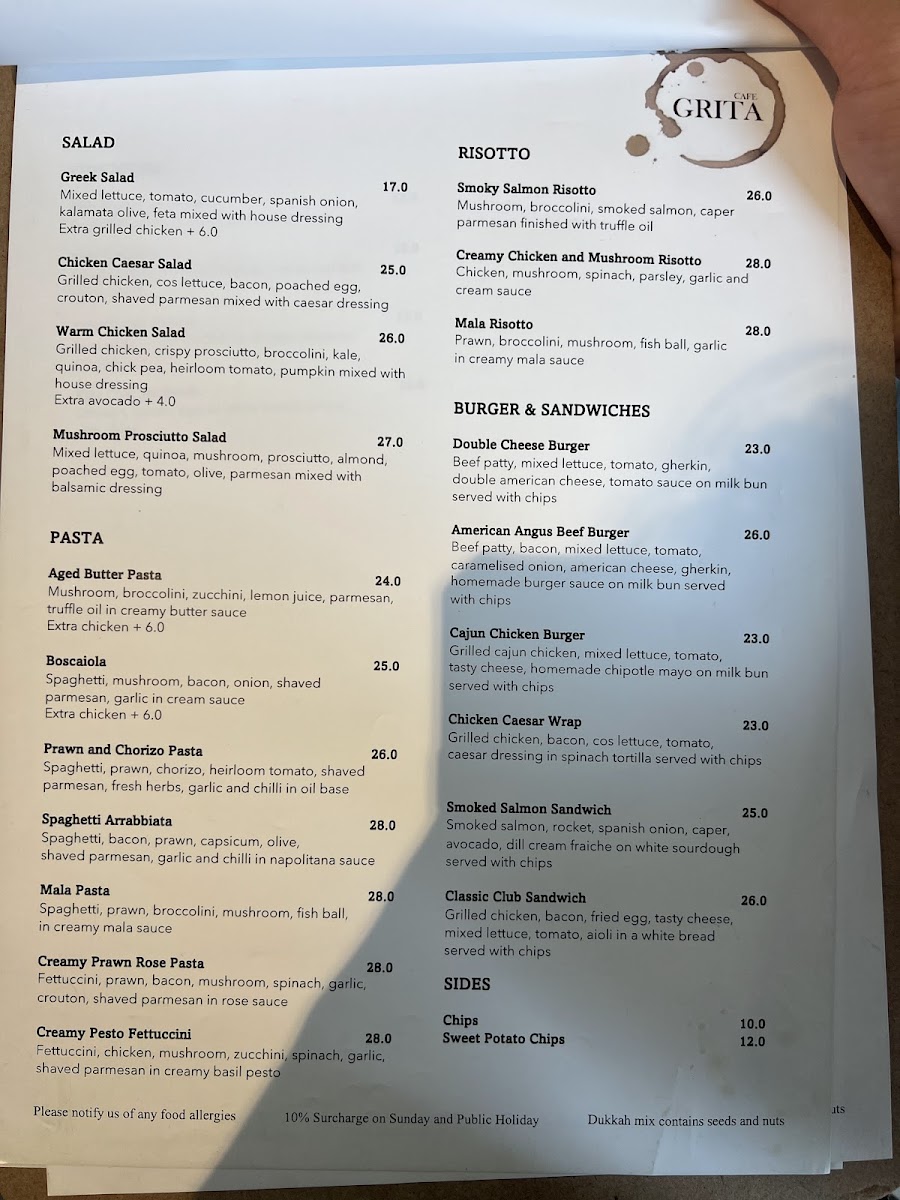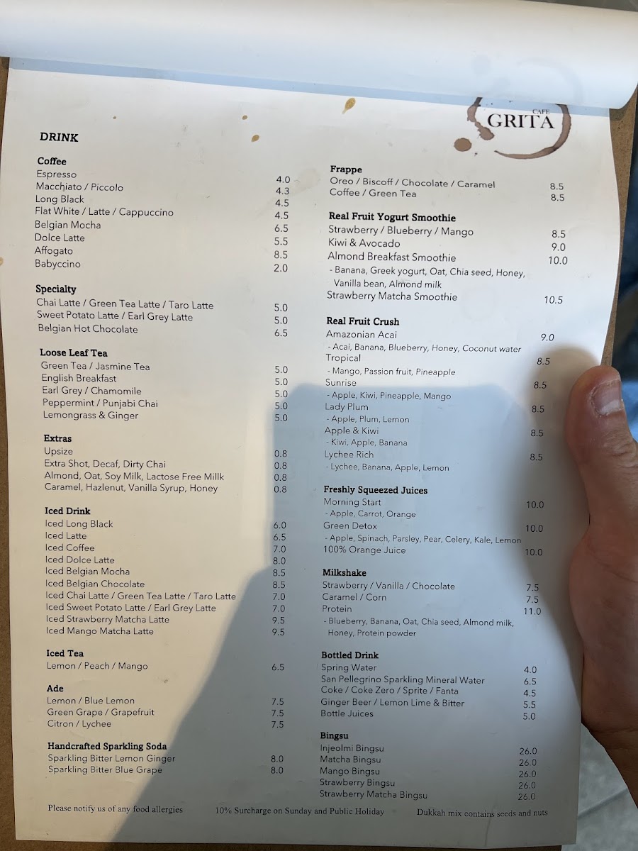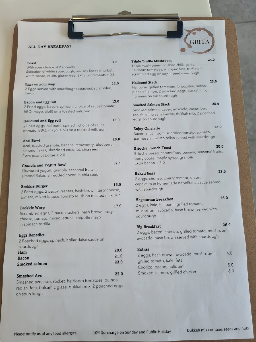 Cafe Grita Menu